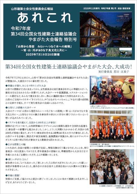 ・8/27 第4回建築女子フォーラム 「銀山温泉本館古勢起屋改修復活と 国指定文化財登録へ向けて」~講演会&見学会~ 第4回建築女子フォーラムin尾花沢に参加して 建築女子フォーラムの企画にあたり ・7/17・18 第31回全国女性建築士連絡協議会(東京) 「未来へつなぐ住環境づくり」 |