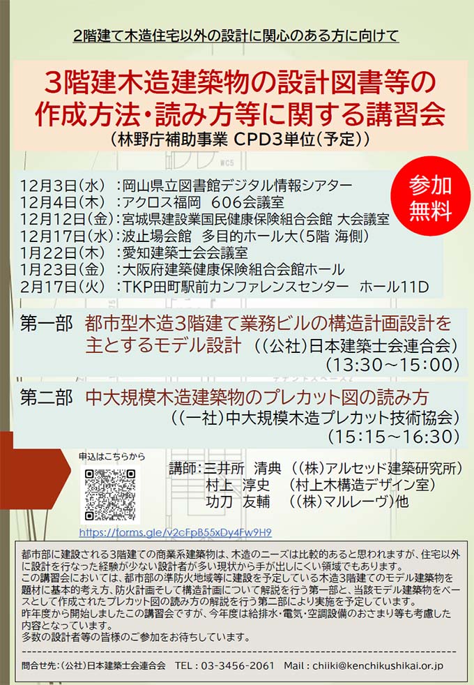 3階建木造建築物の設計図書等の作成方法・読み方等に関する講習会